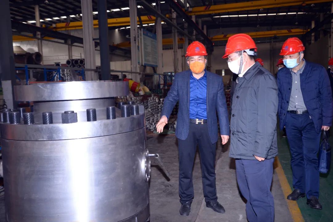 3月11日下午,金山區(qū)區(qū)委書記胡衛(wèi)國攜區(qū)委辦、區(qū)經(jīng)委、金山工業(yè)區(qū)管委會等領(lǐng)導(dǎo)一行蒞臨雙恒閥門集團調(diào)研復(fù)工復(fù)產(chǎn)情況。在集團董事長黃文意,副總經(jīng)理陳信陽、黃金標等人的陪同下,胡書記一行先后深入走訪了公司入口防疫站、研發(fā)中心、理化中心、數(shù)控加工中心、大口徑閥門加工中心、超低溫深冷試驗區(qū)、高溫閥門動態(tài)實驗臺等主要生產(chǎn)試驗和研發(fā)區(qū)域,調(diào)研復(fù)工復(fù)產(chǎn)情況。