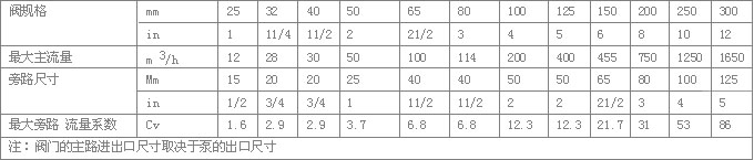 材料的溫度范圍:型號編制:作用原理:根據(jù)感應到的主路流量不同,自動再循環(huán)閥的主閥瓣止回錐將自動移動到某一個位置上。同時主閥瓣帶動旁路閥杠桿,將主閥瓣動作傳遞至旁路,通過杠桿控制旁路閥閥瓣的位置,改變旁路的節(jié)流面積,從而控制通過旁路的流量。當主閥瓣回至閥座關(guān)閉狀態(tài)時,所有流量通過旁路回流。當主閥瓣上升至頂端位置時,旁路則完全關(guān)閉,所有泵的流量流向工藝系統(tǒng)。該閥集四種功能于一體。流量感知:自動再循環(huán)閥的主閥瓣能自動感知工藝系統(tǒng)中的主流量,從而根據(jù)此流量來確定主閥瓣和旁路閥瓣的位置。再循環(huán)控制:自動再循環(huán)閥可以將泵正常運行所需要的最小流量通過旁路吸入到存儲裝置中,調(diào)節(jié)水泵的H-Q特性,實現(xiàn)再循環(huán)。旁路多級減壓:旁路控制系統(tǒng)能低噪音小磨損的把回流介質(zhì)從泵出口的高壓減至適宜回流存儲裝置中的低壓止回:自動再循環(huán)閥還具有止回閥的作用,防止液體回流到泵體中。標準型旁路帶止回功能。其它旁路尺寸可按要求制作;最大的旁路流量取決于最大的Kv值。尺寸選擇:零件與尺寸:尺寸與重量:
